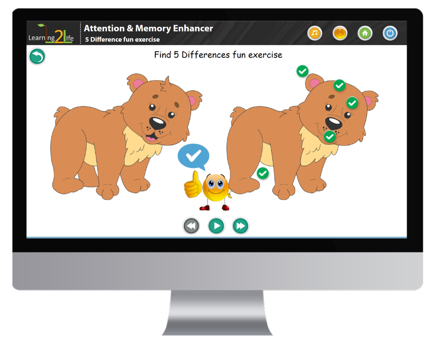 This interactive, audio-visual game module is thoughtfully designed to help your child strengthen memory, attention span, focus, and visual processing—all through a fun, touch-based experience.